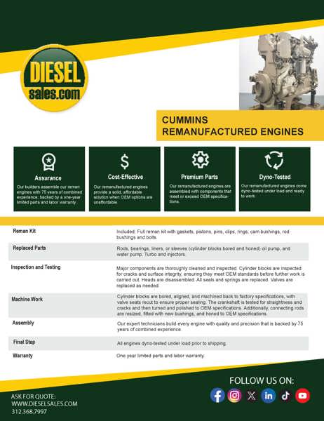 Rebuilt Surplus Cnh Factory Remanufactured Cummins Complete Engine. This Unit Is The Same As Cummins 6bta5.9. Sold Exchange With 6-Month Parts Warranty, Plus $1,000 Refundable Core Deposit.