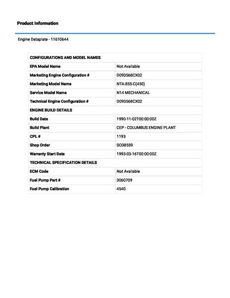 Good Running Big Cam 3, 450hp, With Only 500 Hours On It. 30 Day Limited Parts Warranty. Exchange With $2,000.00 Refundable Core Deposit Price Includes Freight Us 48. Engine Sn#11610644, Cpl1193.